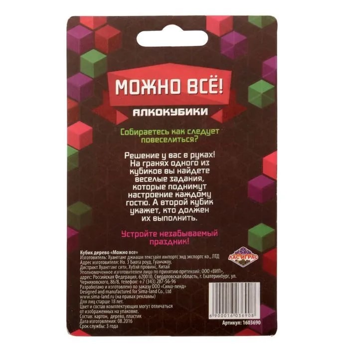 Купить кубик "можно все", алкокубики для принятия решений от 60 руб. с доставкой до пункта выдачи в Ахтубинске. Интернет магазин ДекаМаркет. Оплата при получении.